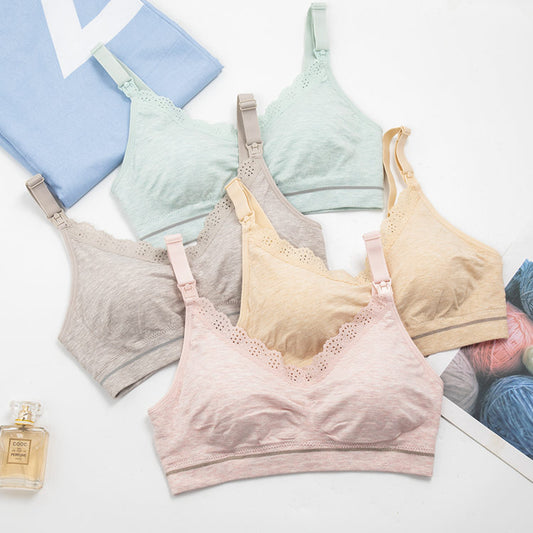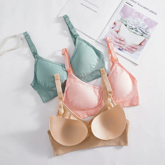 Cotton seamless maternity bra removable padded Modal breastfeeding underwear front opening comfortable wireless nursing bra
