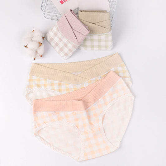 New Pregnant Women's Underwear Plaid Low-waist Breathable Pregnancy Maternity Panties Belly Support Briefs