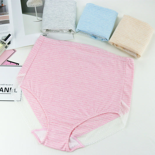 High quality cotton striped pregnant women's briefs high waist lace adjustable belly support maternity panties