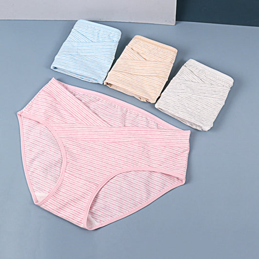 Women Under the Bump Maternity Panties Postpartum Underwear Soft Fabric Bikini Crossover Underpants Striped Pregnancy Panties