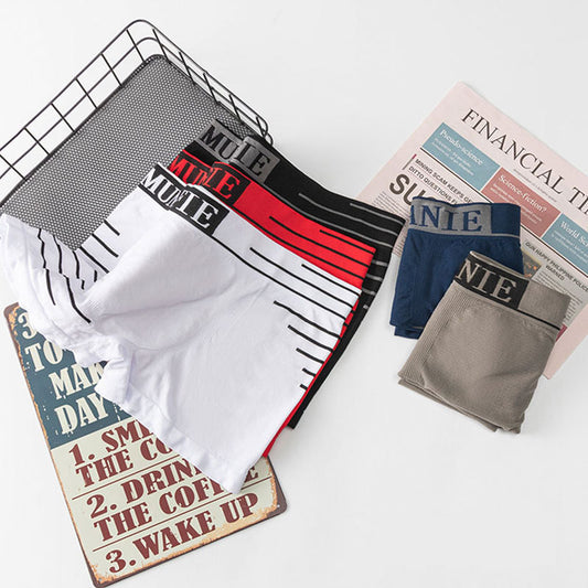 New Japanese Style Seamless Men's Boxer Briefs Letters Print Sports Running Boxer Shorts Male Mid-waist Panties