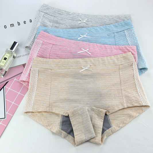 New striped skin friendly women's boxer briefs bow lace large size pregnant women's panties